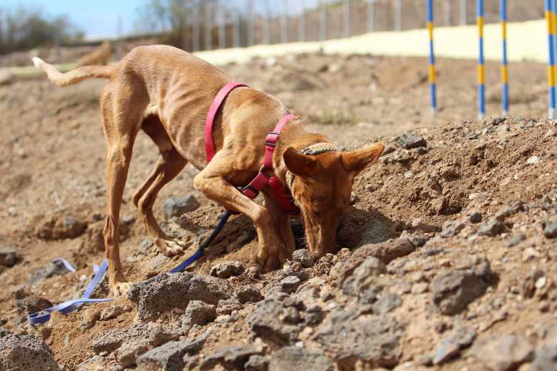 Als Podenco Canario hat Anjo ordentlich Jagdtrieb, den man nicht unterschätzen darf – das Jagen liegt diesen Hunden einfach im Blut. Das wird wohl auch nie ganz aus ihm herauszubekommen sein. Es lohnt sich aber auf jeden Fall, daran zu arbeiten – mit einem guten Hundetrainer oder einer kompetenten Hundeschule. Möglicherweise kann er aber niemals ohne Leine laufen. Das muss Ihnen bewusst sein, wenn Sie sich für Anjo interessieren. In diesem Fall wäre eine lange Schleppleine eine gute Alternative, um ihm trotzdem einen gewissen Bewegungsradius und ein Gefühl von Freiheit zu bieten. Seine neuen Menschen sollten sich daher unbedingt mit dem Thema beschäftigt und optimalerweise bereits über Jagdhundeerfahrung verfügen.