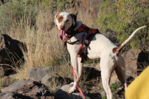 Der hübsche Kerl hat außerdem einen ausgeprägten Jagdtrieb. Beim Gassigehen, was er übrigens noch üben muss, würde er am liebsten allem hinterherjagen, was sich bewegt. Selbst Vögeln springt er hinterher, wenn er die Möglichkeit dazu hat. Sie am Ende der Leine müssen deshalb mit wachen Sinnen unterwegs sein und rechtzeitig reagieren, wenn er eine Fährte aufnimmt oder einen Hasen flitzen sieht. Hier besteht Trainingsbedarf für beide Seiten.