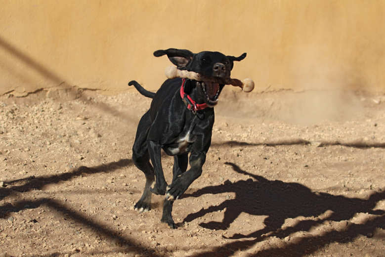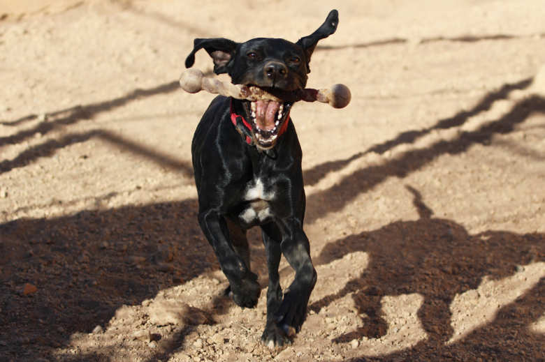 Als Pointer hat Betty ganz rassetypischen Jagdtrieb und ist draußen ständig auf der Suche nach einer Fährte und deshalb ziemlich rastlos. Zum Glück findet sie vor dem Tierheim aber nicht allzu viel, was sie jagen könnte. Als gezüchteter Vorstehhund bleibt sie stehen, wenn sie etwas Interessantes sieht, und fixiert es. Da wir aber schon fleißig mit ihr geübt haben, ist sie dennoch gut abrufbar und hört auf ihren Namen. Selbst wenn sie bereits im Jagdmodus ist, reagiert sie sofort auf unsere Rufe und dreht sich zu uns um.