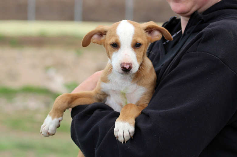 Chris kam bei uns im Tierheim zur Welt. Um seine Mama Cinnamon einzufangen, brauchte es einen langen Atem und viel Geduld, denn die kleine Podenca war sehr scheu. Sie lebte auf der Straße und wurde über sieben Monate lang von einer Tierschützerin gefüttert, bevor sie endlich gesichert werden konnte.