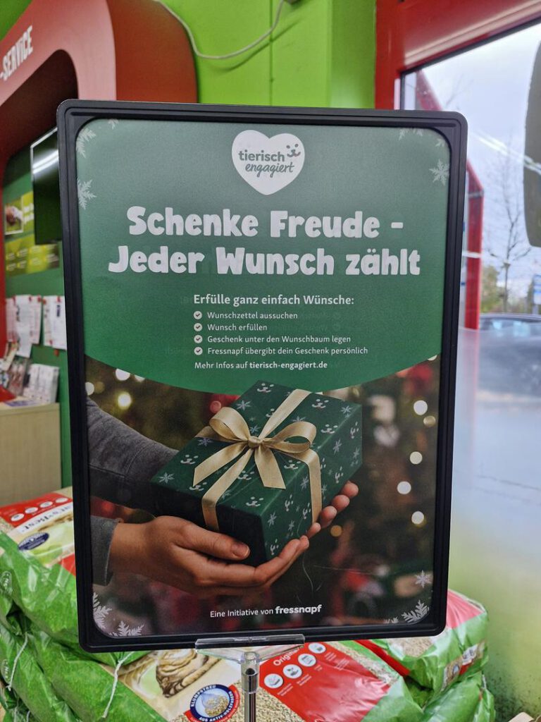 Die große Benefiz-Weihnachtsaktion „Tierheimwünsche werden wahr“ des Fressnapf Bensheim war auch diesmal wieder ein voller Erfolg! Dank hunderter großzügiger Spender konnten wir mehrere Wagenladungen voller Futter, Spielzeug, Leckerchen, Decken, Hundebetten, Katzenhöhlen, Leinen und noch viel mehr abholen. Ein riesiges Dankeschön geht daher an alle Spenderinnen und Spender sowie das Team des Fressnapf Bensheim, die das auch diesmal möglich gemacht haben!