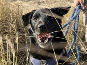 Beim Gassigehen läuft er gut an der Leine, ist aber so sehr mit der Umgebung beschäftigt, dass er sich noch nicht sonderlich an uns orientieren kann. Das ist aber total verständlich, da Febby erst einmal die für ihn so neue Situation verarbeiten muss.