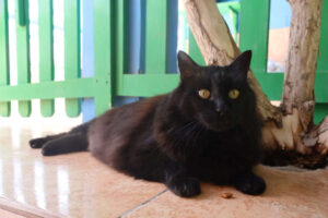 Giant ist ein sehr verschmuster Kater, der morgens gerne als Erster in der Finca-Küche sitzt, um sein Frühstück und Aufmerksamkeit einzufordern. Er liebt den Kontakt zu Menschen und genießt jede Streicheleinheit sehr. Dabei zeigt er eine lustige Eigenart: Wenn er genug hat, schlägt er mit der Pfote – netterweise ohne Krallen – nach unseren Händen, nur um kurz darauf wieder gestreichelt werden zu wollen. Wir finden, dass er seine Grenzen sehr charmant aufzeigt 😊.