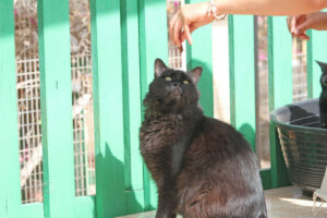 Eine deutsche Tierfreundin war in einem Hotel nahe Los Gigantes und hatte dort in ihrer Ferienanlage einen Garten entdeckt, in dem viele Katzen unterschiedlichen Alters lebten und sich unkontrolliert vermehrten. Wir fuhren zu dem Hotel und starteten nach Absprache mit der Hotelleitung eine Fangaktion. So kam Giant zu uns.