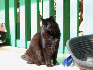 Giant ist ein sehr verschmuster Kater, der morgens gerne als Erster in der Finca-Küche sitzt, um sein Frühstück und Aufmerksamkeit einzufordern. Er liebt den Kontakt zu Menschen und genießt jede Streicheleinheit sehr. Dabei zeigt er eine lustige Eigenart: Wenn er genug hat, schlägt er mit der Pfote – netterweise ohne Krallen – nach unseren Händen, nur um kurz darauf wieder gestreichelt werden zu wollen. Wir finden, dass er seine Grenzen sehr charmant aufzeigt 😊.