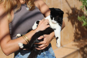 Mitte Juni kamen zunächst Luma und Lumi zu uns. Sie gehörten zu einem Wurf von insgesamt vier Kitten. Deutsche Touristen hatten die Kleinen entdeckt und uns gefragt, ob wir sie aufnehmen würden. Wir waren eigentlich wie immer voll, konnten aber dank einer Pflegestelle etwas „umsortieren“ und so Platz für die Geschwister schaffen.