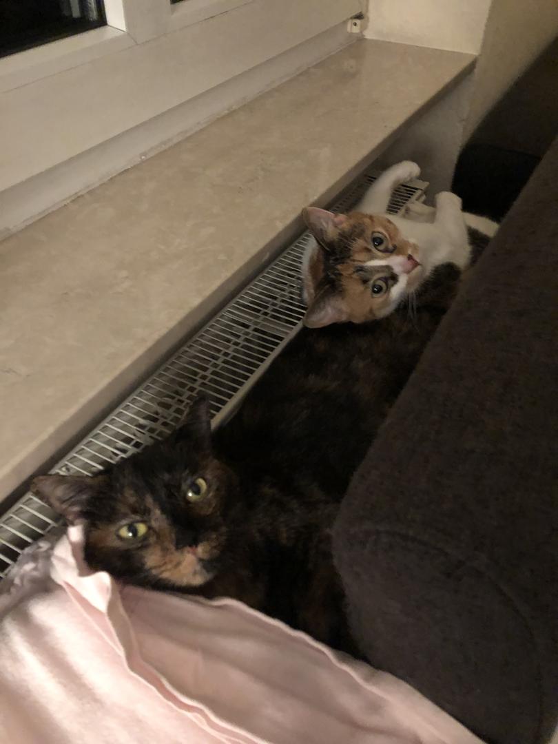 Beide verstehen sich gut und ziehen sich schnell zurück, wenn es laut wird. Sie sind beide aber sehr verschmust, wenn es ruhig ist. Deshalb brauchen sie unbedingt ein ruhiges Zuhause (ohne Kleinkinder), ggf. mit der Möglichkeit auf späteren Freigang. Aktuell nehmen sie den vorhandenen Garten nicht an.