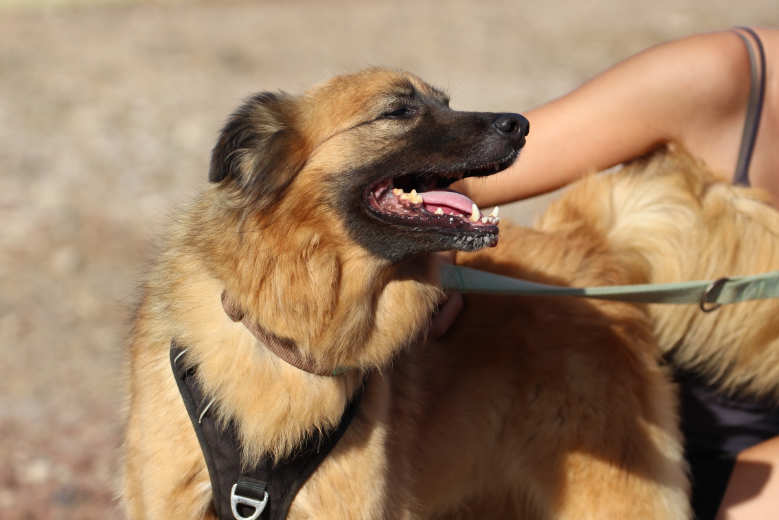 Seine frühere Familie hat scheinbar nur wenig mit ihm gearbeitet, denn er ist sehr reizempfänglich. Sobald ihm Aufmerksamkeit fehlt, er frustriert ist oder ein Geräusch hört, fängt er an zu bellen. Scheinbar funktionierte das in seinem ehemaligen Zuhause gut. Er ist also sehr mitteilungsbedürftig und kommentiert so ziemlich alles … und wir haben fast das Gefühl, dass ihm Bellen auch einfach Spaß macht 😊.