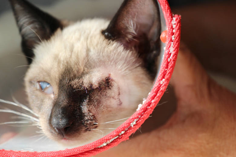 Sol hatte bei seiner Ankunft starke Probleme mit den Augen, besonders die Binde-, Horn- und Nickhäute waren betroffen. Sein linkes Auge musste deshalb inzwischen entfernt werden. Auf dem verbliebenen, rechten Auge sieht er noch etwas, aber nicht mehr allzu viel. Freigang kommt für ihn daher leider nicht in Frage.