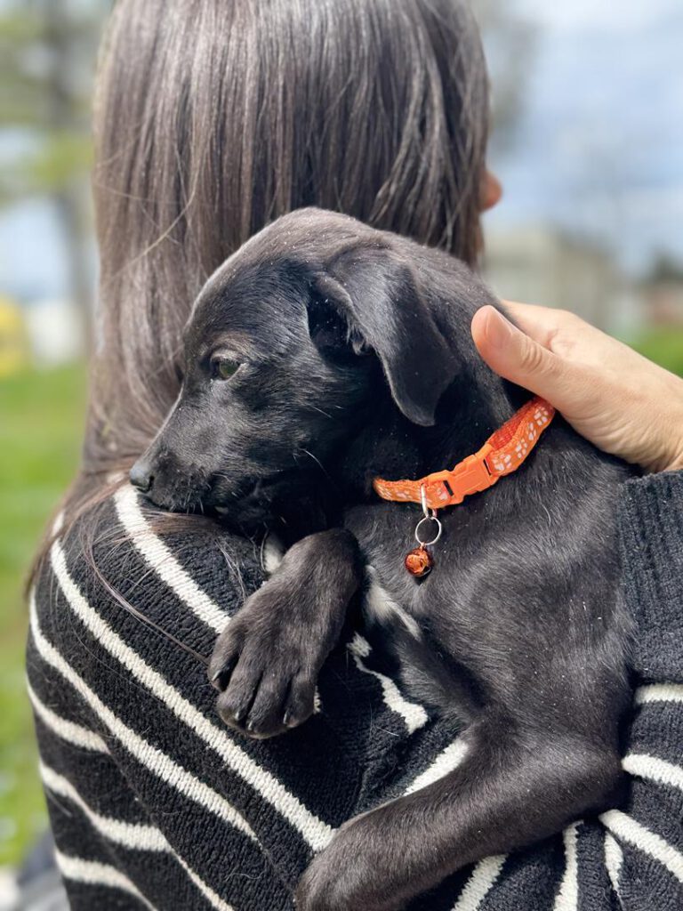 Dieses schwarze Mädchen ist das sanftmütigste Wesen, das ich je getroffen habe. Und ich habe schon viele Tierkinder kennengelernt. Wenn du sie adoptieren solltest, achte bitte darauf, wie sie auf dich zukommt – mit wie langsamen und rücksichtsvollen Bewegungen, lieb und niedlich –, wie sie dich berührt und ihre Zuneigung auf eine sehr herzliche und aufrichtige Art zeigt. Selbst wenn sie total aufgeregt ist, passt ihre Energie zu deiner. Sie mag Kürbisse, Kuscheln, Laufen und Schlafen.